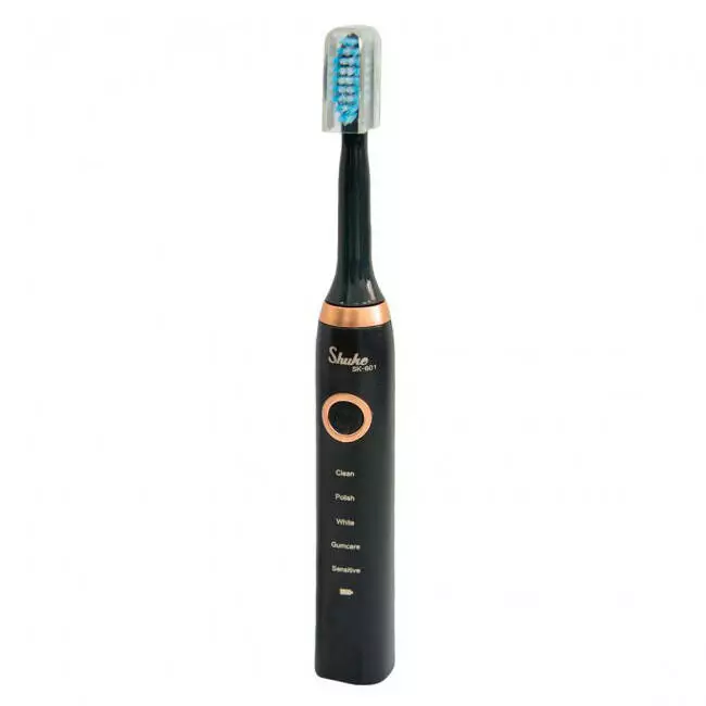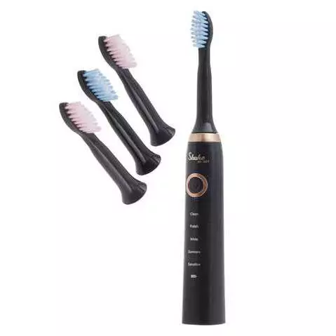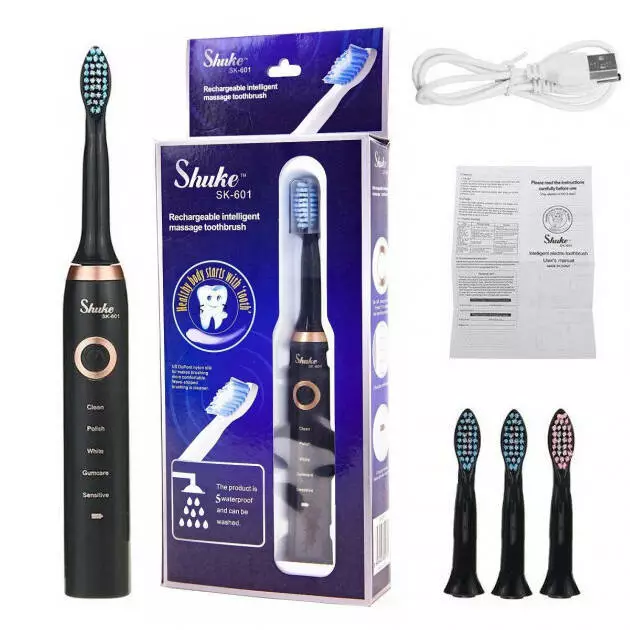Электрическая зубная щетка Shuke SK-601 аккумуляторная. Ультразвуковая щетка для зубов + 3 насадки. Цвет: черный
