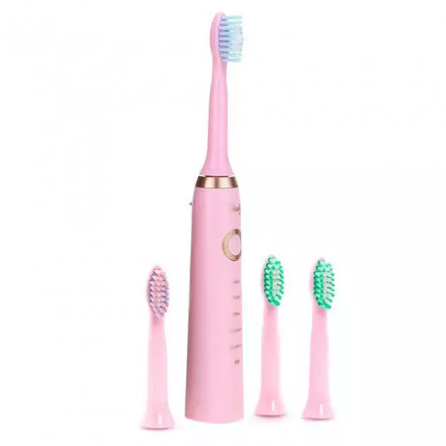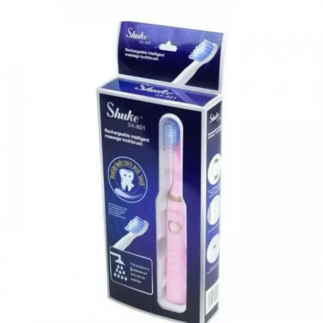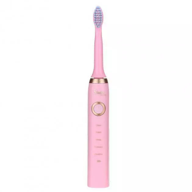 Электрическая зубная щетка Shuke SK-601 аккумуляторная. Ультразвуковая щетка для зубов + 3 насадки. Цвет: розовый
