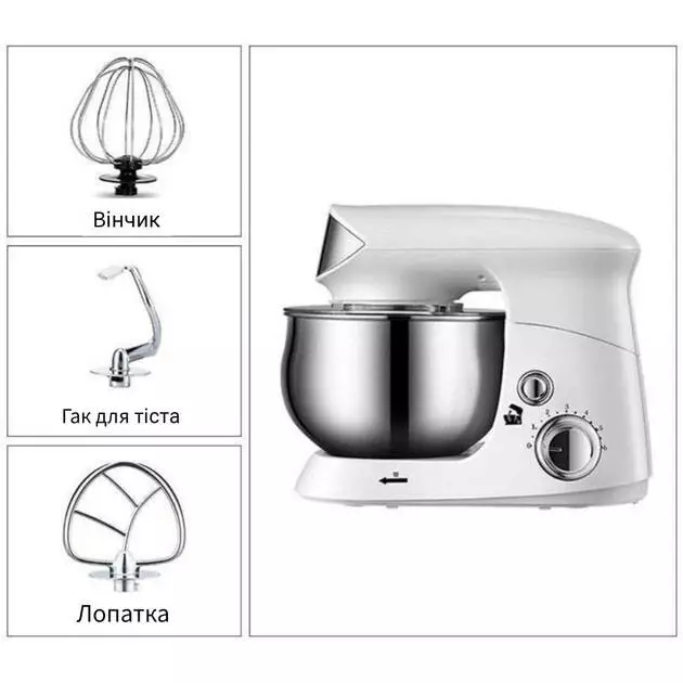 Электрический планетарный миксер тестомес Rainberg RB-8083 с насадками. Цвет: белый