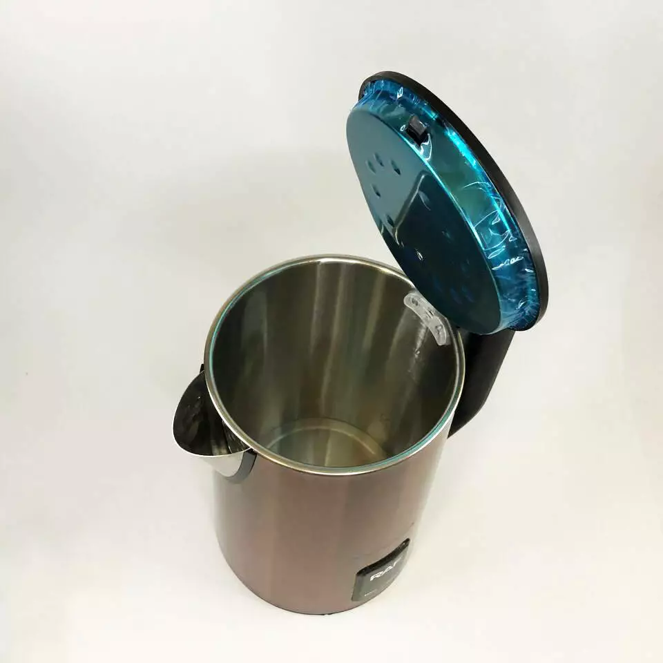 Компактный электрический чайник емкостью 2,5 литра и мощностью 2000 Вт оснащен автоматическим отключением при вскипании воды. Корпус изготовлен из высокопрочной нержавеющей стали, которая не изнашивается даже после длительной эксплуатации электрочайника и имеет световую индикацию во время кипячения. Чайник вращается на подставке на 360 градусов.