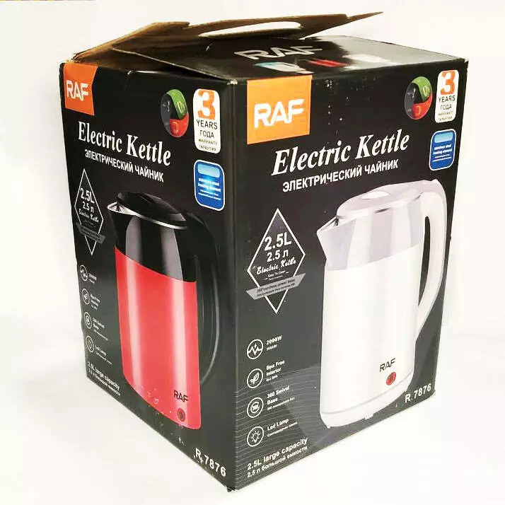 Компактный электрический чайник емкостью 2,5 литра и мощностью 2000 Вт оснащен автоматическим отключением при вскипании воды. Корпус изготовлен из высокопрочной нержавеющей стали, которая не изнашивается даже после длительной эксплуатации электрочайника и имеет световую индикацию при кипячении. Чайник вращается на подставке 360 градусов.