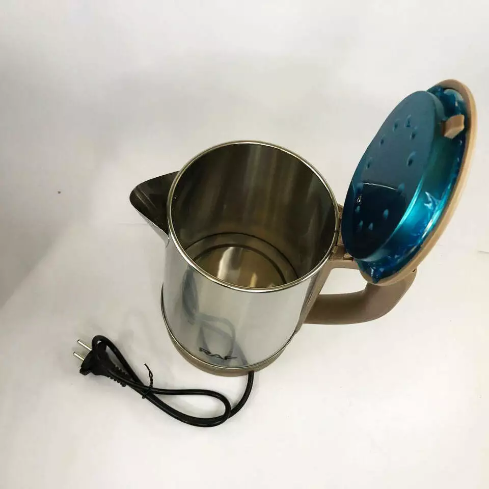 Компактный электрический чайник емкостью 2,3 литра и мощностью 2000 Вт оснащен автоматическим отключением при вскипании воды. Корпус изготовлен из высокопрочной нержавеющей стали, которая не изнашивается даже после длительной эксплуатации электрочайника и имеет световую индикацию во время кипячения. Чайник вращается на подставке на 360 градусов.