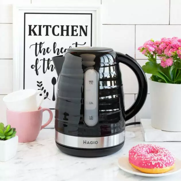 Электрочайник MAGIO MG-101 на 1,7л, хороший электрический чайник, маленький электрочайник. Цвет: черный