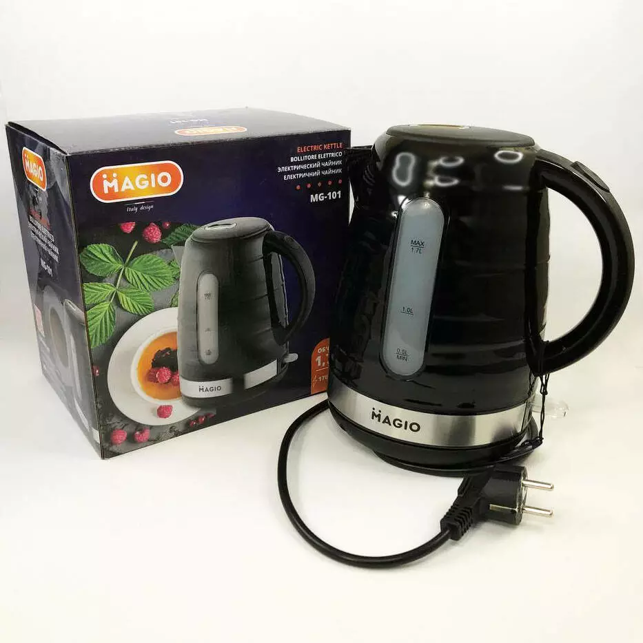 Чайник MG-101 сочетает в себе стильный дизайн с превосходным качеством и долговечностью. Эта уникальная модель объёмом 1.7 л обеспечивает быстрое кипячение воды для всей семьи.