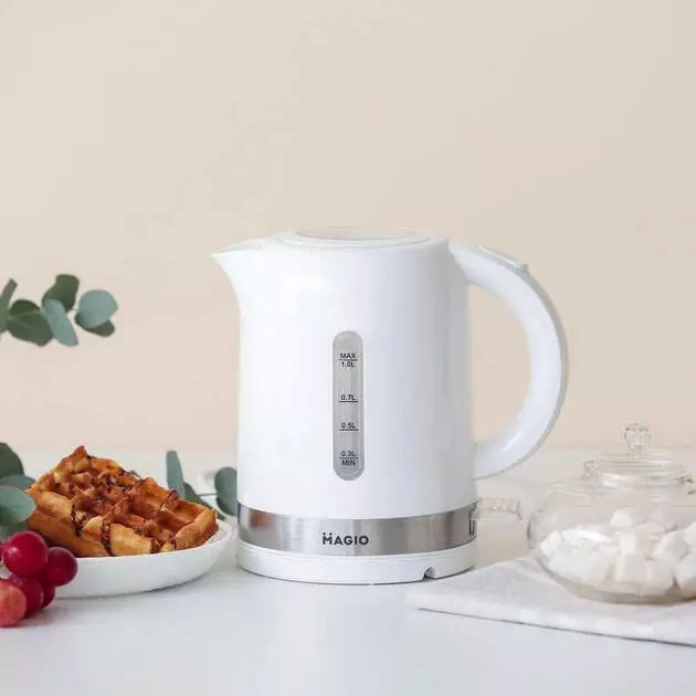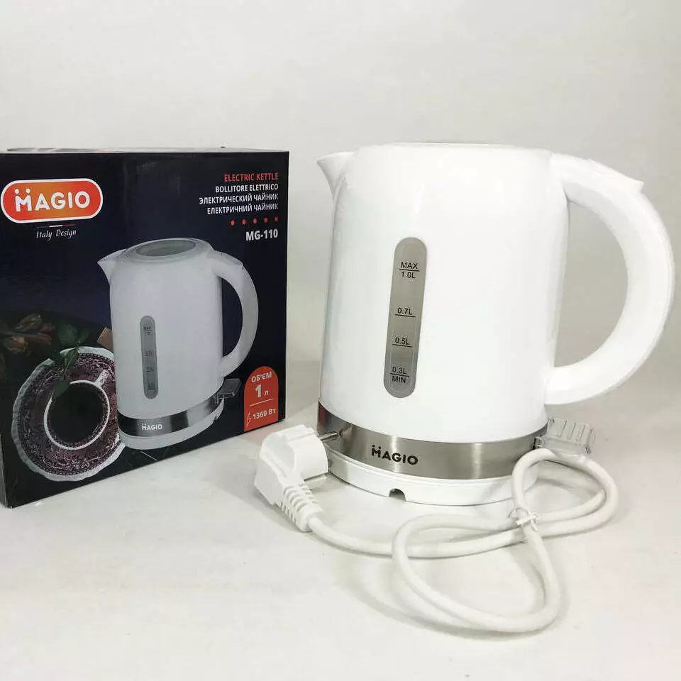 Электрочайник Magio – отличный помощник на вашей кухне. Благодаря мощности нагрева можно вскипятить 1 л воды за относительно короткий промежуток времени. Станет настоящим украшением для вашей уютной кухни. Его эргономический и привлекательный дизайн придется по душе всем.