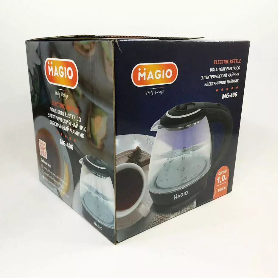 Электрочайник Magio МG-496 – отличный помощник на вашей кухне. Благодаря большой мощности нагрева можно вскипятить 1 л воды за относительно короткий промежуток времени. Станет настоящим украшением для вашей уютной кухни. Его эргономический и привлекательный дизайн придется по душе всем.