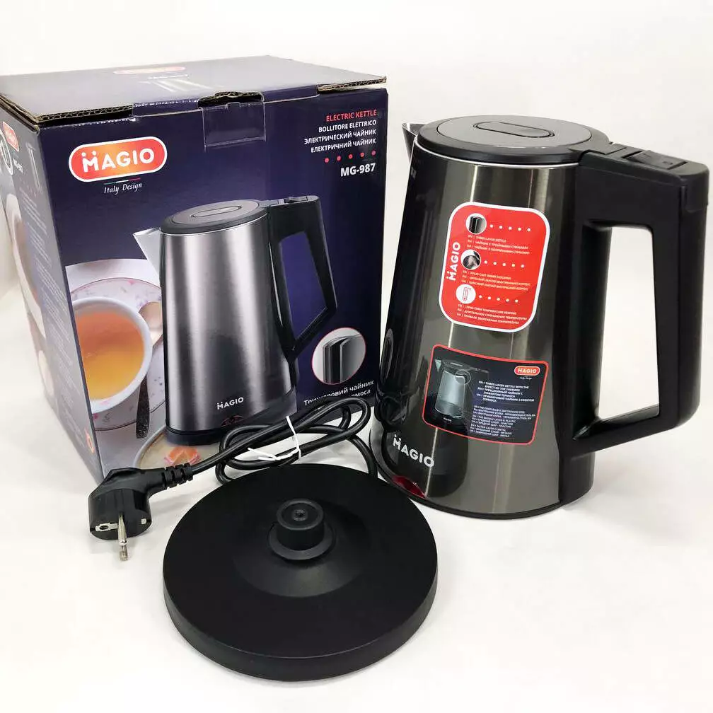 Электрочайник MAGIO MG-987, электронный чайник, чайник дисковый, стильный электрический чайник