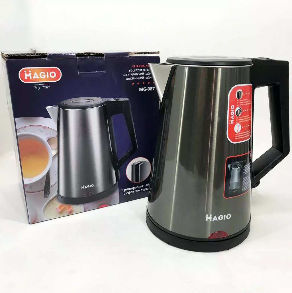 Чайник-термос MG-987 объёмом 1.7 л сочетает в себе стильный дизайн с превосходным качеством и долговечностью. Чайник-термос благодаря тройным стенкам нагревается гораздо быстрее, экономя электроэнергию и время, а эффект термоса сохранит горячую воду длительное время.