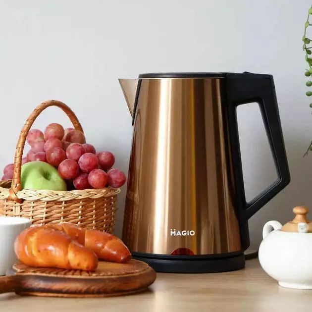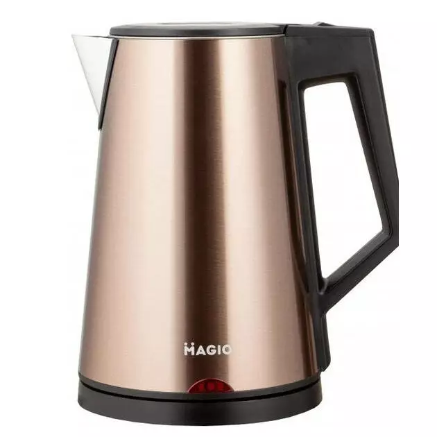 Чайник 1,7 л Magio MG-989 - сочетает в себе стильный дизайн с превосходным качеством и долговечностью. Электрочайник можно использовать как термос - сохранит горячую воду длительное время. Благодаря трёхслойным стенкам нагревается гораздо быстрее, экономит электроэнергию и время. Внешний корпус сделан из высококачественного полипропилена и металла. За счет этого, при работе чайник не нагревается снаружи, его температура не превышает 70°, что исключает возможность ожога. Внутренняя колба, крышка и носик изготовлены из высококачественной нержавеющей стали, совместимой с пищевыми продуктами, что обеспечивает чистоту воды и рассчитаны на долгий срок службы. При нажатии кнопки механизм открывания крышки срабатывает мягко и плавно, исключая разбрызгивание конденсата с крышки. Скрытый нагревательный элемент обеспечивает быстрое кипячение, надежность и простоту очистки чайника, а встроенный контроллер защищает от перегрева. Комплексная система безопасности для предотвращения короткого замыкания и выкипания воды. Функция автовыключения активируется, когда процесс завершается или прибор снимается с основания. Шнур оборачивается вокруг основания, что позволяет легко разместить чайник на кухне. Беспроводная подставка с поворотом 360° для удобства использования.
