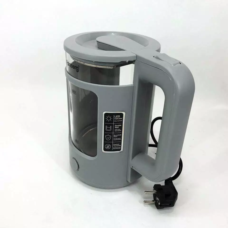 Электрочайник Rainberg RB-2220 стеклянный, дисковый прозрачный. Чайник с подсветкой 2200W. Цвет: серый