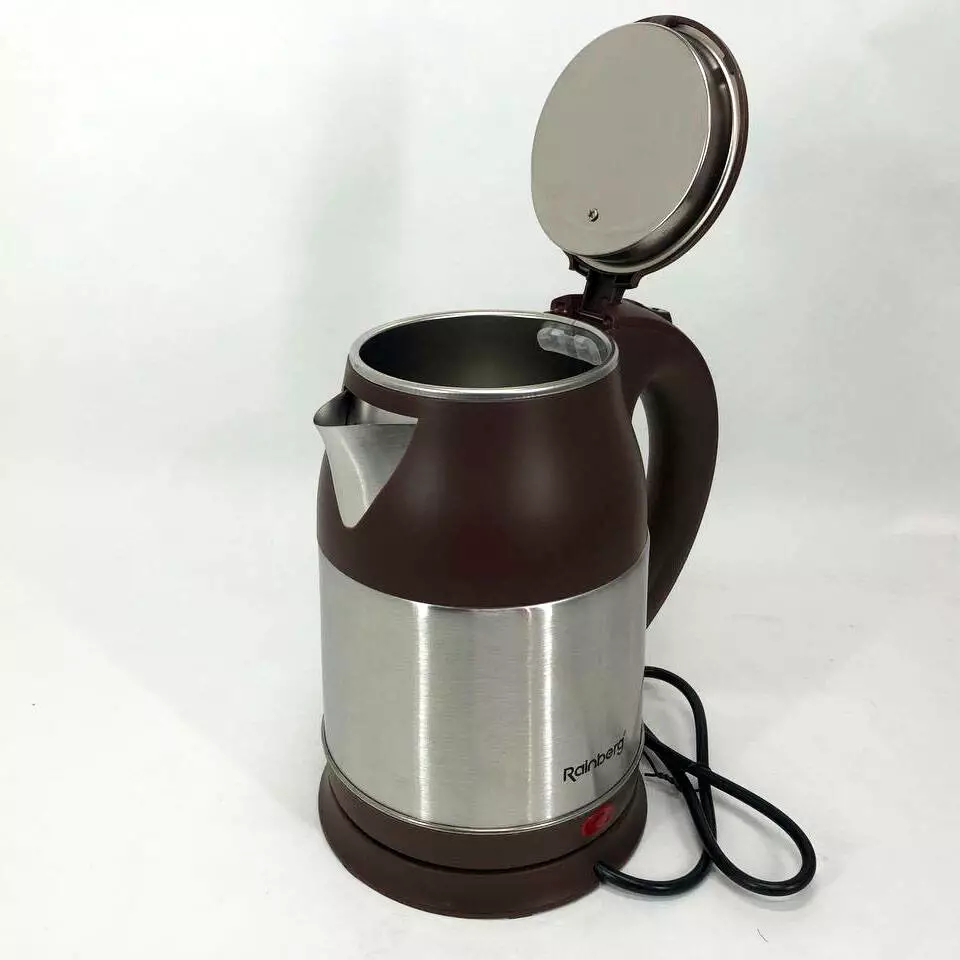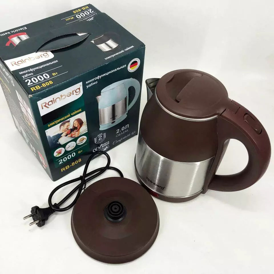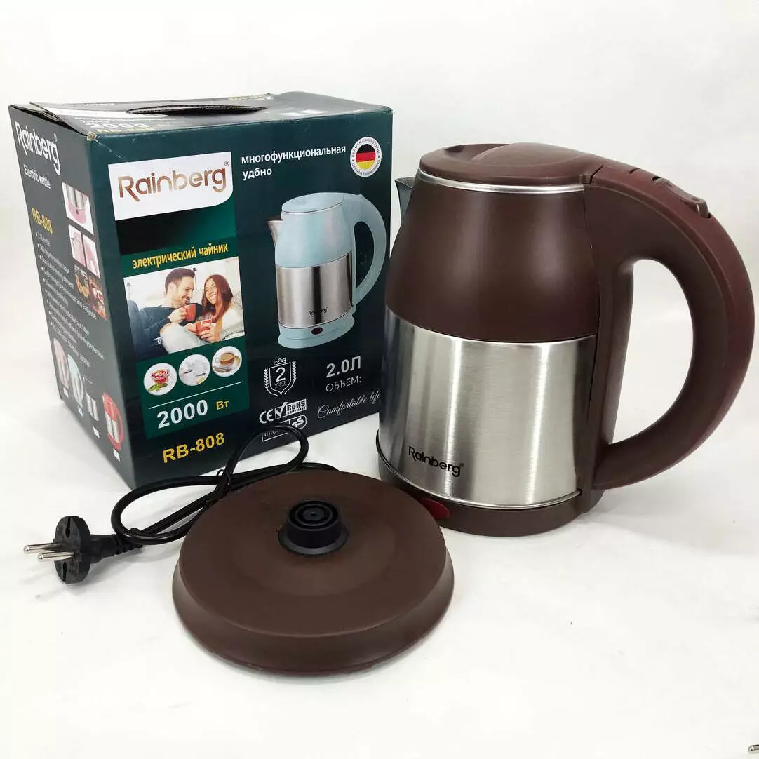 Электрочайник Rainberg RB-808 2 л нержавеющая сталь, тихий электрочайник хороший. Цвет: коричневый