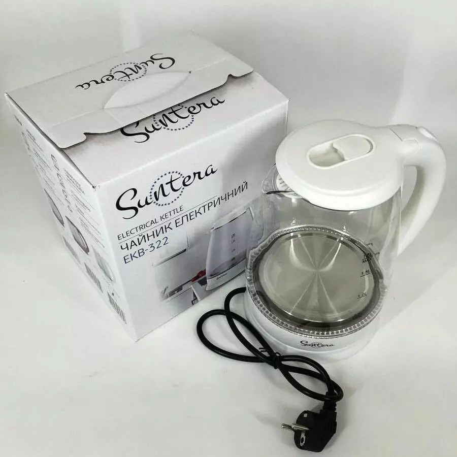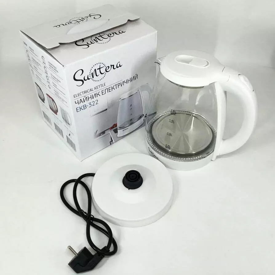 Электрочайник Suntera EKB-322W, чайники с подсветкой, хороший электрический чайник. Цвет: белый