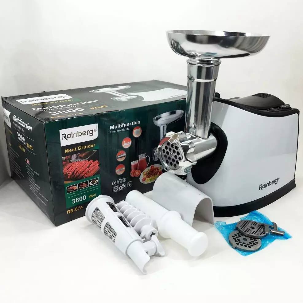 Электромясорубка с соковыжималкой Rainberg RB-674 3000W, электромясорубка для шинковки, мощная мясорубка