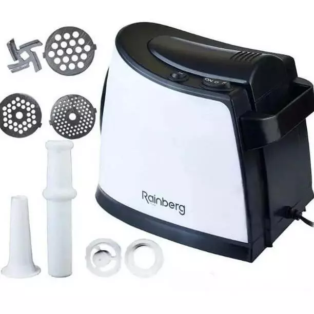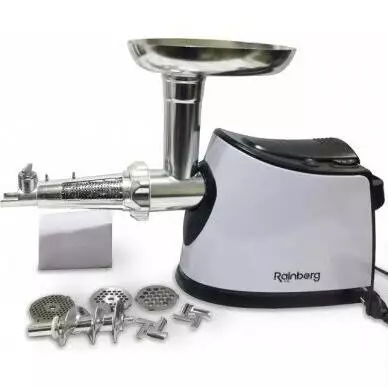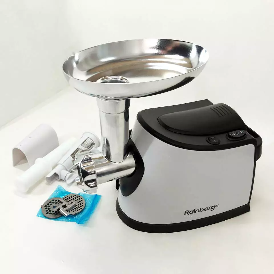 Мясорубка Rainberg RB 674 - это ваш надёжный напарник и помощник на кухне. Качественная и доступная по своей стоимости модель электрической мясорубки от фирмы Rainberg предназначена для приготовления домашнего фарша из мяса различных видов, овощей, рыбы, а также грибов. Устройство оснащается дополнительными сменными насадками и приспособлениями, что даёт возможность применения для приготовления домашних колбасок и печенья. Мощность электрического мотора 3000 Вт с лёгкостью справится с большинством разнообразных задач. Модель комплектуется набором полезных аксессуаров: сменные металлические сеточки для фарша разного диаметра: 3, 5, 7 мм, позволят готовить вкусный и сочный домашний фарш различной степени консистенции. Стильный корпус с элементами из нержавеющего металла и прочного пластика придают внешнему виду современности и элегантности.
