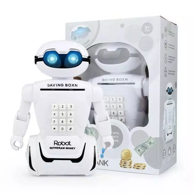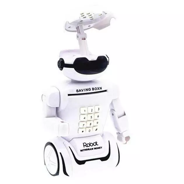 Это новый электрический сейф-копилка Robot PIGGY BANK с кодовым замком, фонарем и музыкой. Игрушка выглядит как настоящий атрибут шпиона: светящиеся глаза, имитация звуков робота, возможность установки кода. Все это делает обычную копилку настоящим увлечением для вашего ребенка, с которым он сможет забыть о своем смартфоне.