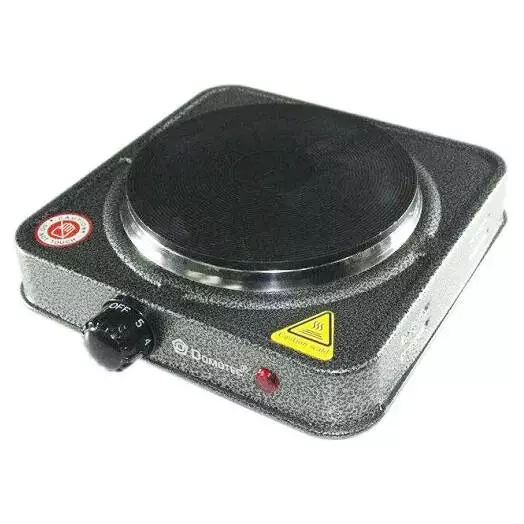 Работоспособность электроплиты Domotec MS-5811 1500W регулируется с помощью механического переключателя. Имеет одну конфорку, со спиральным нагревательным элементом.
