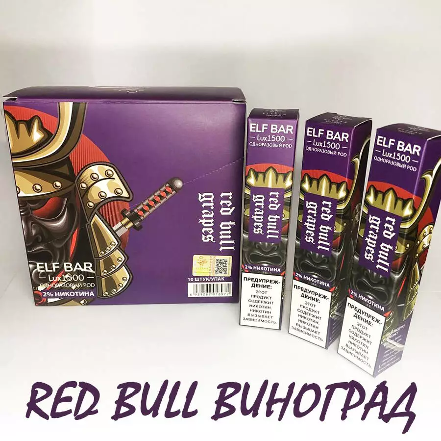 Elf Bar LUX одноразовая электронная pod-система Эльф Бар 1500 затяжек 850mAh. Red Bull Виноград