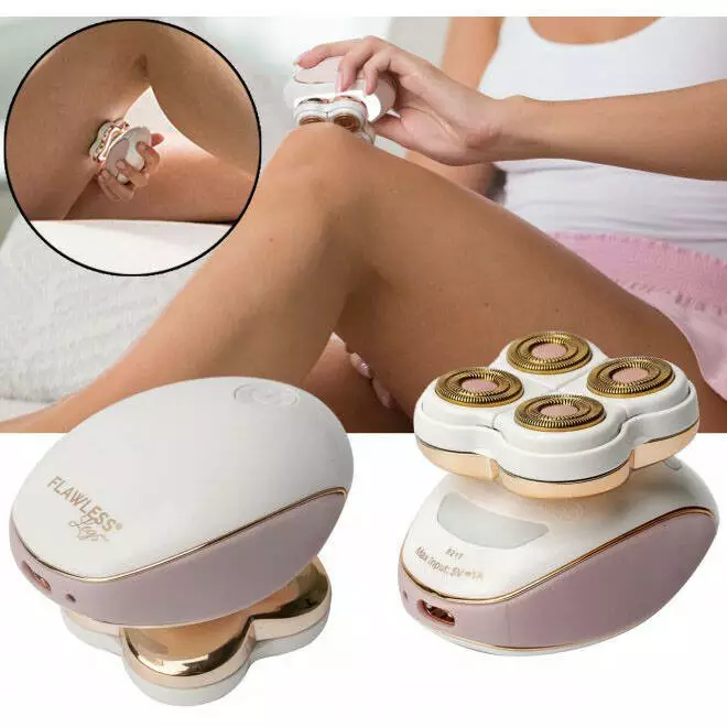 Совершенный эпилятор Flawless Legs поможет удалить нежеланные волосы с тела без усилий и последствий. Разработка была изготовлена в Германии профессиональными экспертами. Аппарат оснащен четырьмя плавающими головками из материала в виде золота (восемнадцать карат). Процесс депиляции выполняется без порезов, раздражения, аллергических реакций, болезненных и неприятных ощущений. Использовать продукт можно для любого кожного типа. Теперь девушки смогут очень просто приобретать гладкость дермы в домашних условиях. Доступная и быстрая ликвидация нежелательной растительности поможет пользователям приобрести уверенность в себе, привлекательный вид.