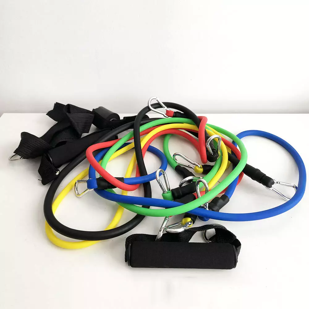 Эспандер резиновый трубчатый разной нагрузки с карабинами 5 шт х 1,2 м; ручки с неопреновым покрытием 2 шт; дверное крепление 1 шт.; чехол для хранения 1 шт.