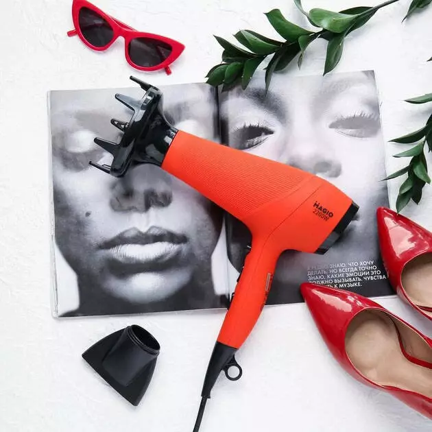 В своем арсенале фен имеет две насадки — концентратор и диффузор. Концентратор позволяет быстро разогреть конкретную прядь, при этом горячий воздух почти не греет уже уложенные и охлажденные пряди, что положительно влияет на состояние волос и качество укладки. А насадка диффузор — это незаменимый инструмент для потрясающих локонов, если у вас кудрявые волосы. Именно из-за своей формы, которая обеспечивает рассеивание горячего воздуха, диффузор не направляет воздушный поток прямо на кудри, а наоборот — бережно циркулирует вокруг них. Благодаря этому форма завитка сохраняется, а волосы становятся менее склонными к повреждению и ломкости. Как результат — здоровые и ухоженные локоны.