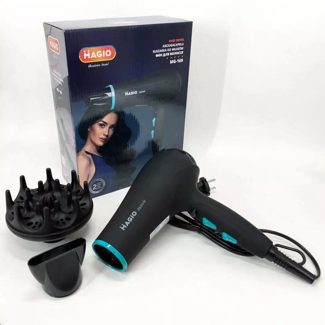 Фен MAGIO MG-169 — это идеальный фен, что сделает Ваши волосы еще более шелквистыми, ухоженными и красивыми. Данная модель имеет высокую мощность — 2600 Вт, поэтому укладка с его помощью должна быть быстрой и легкой.