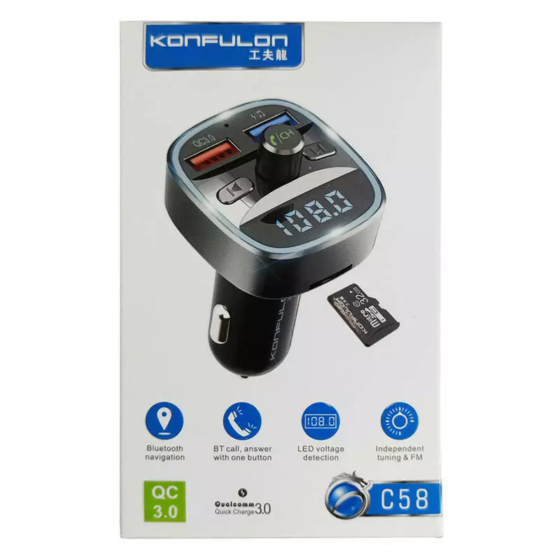 FM-модулятор Konfulon C58, Micro, Bluetooth, 2 USB, Quick Charge 3.0