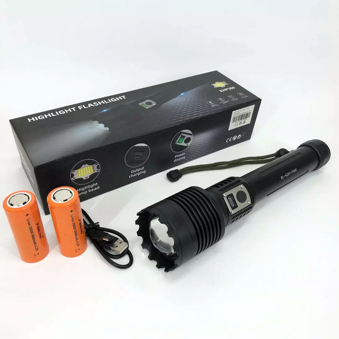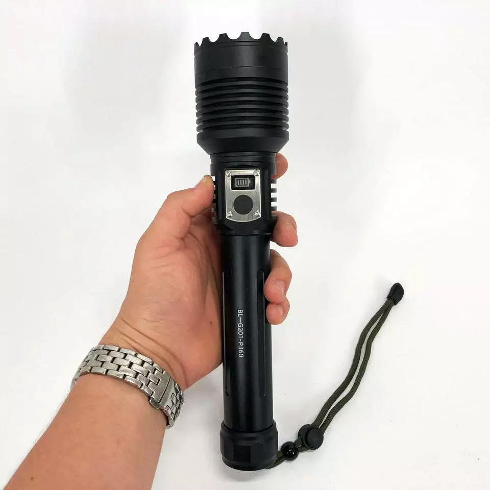 Фонарь аккумуляторный Bailong BL-G201-P360, алюминиевый корпус, с функцией павербанка, качественный фонарик