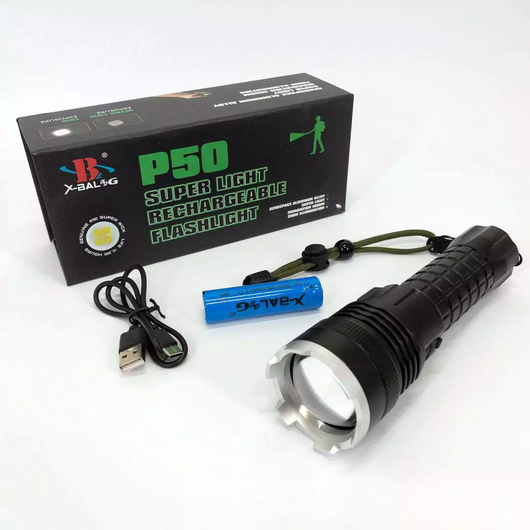 Фонарь аккумуляторный X-Balog BL-A72-P50, ручной фонарик, водонепроницаемый фонарь, мощный аккумуляторный
