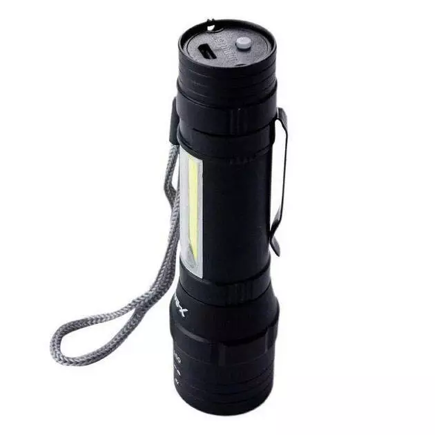 Фонарик с металлическим корпусом освещает достаточно ярко за счет вмонтированного в него одного главного мощного светодиода и бокового светодиода.