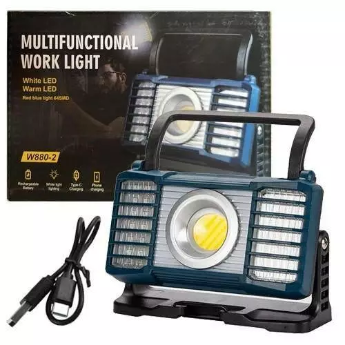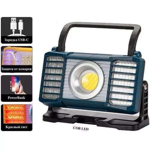 Фонарь кемпинговый переносной W880-2-COB(white/red/blue), мощный фонарь для рыбалки. Цвет: синий