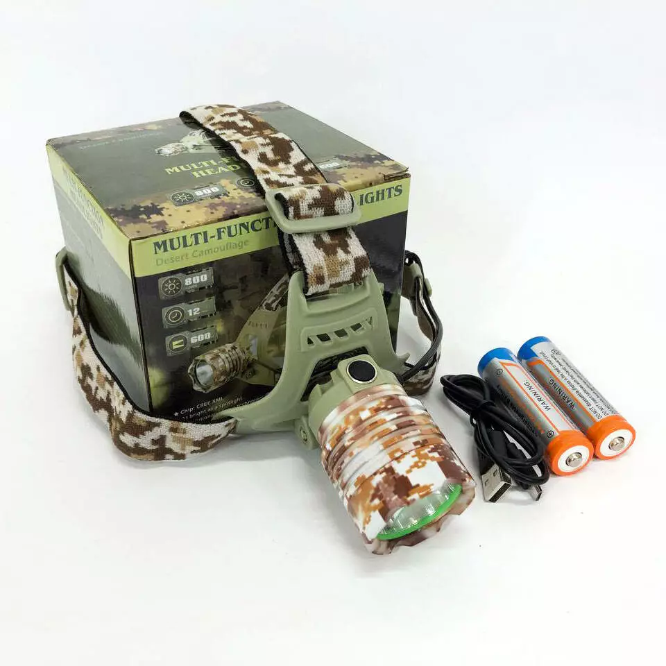 Фонарь налобный 2130-T6 Military, аккумуляторный 18650 х 2, zoom, зарядка micro USB, Головной фонарик