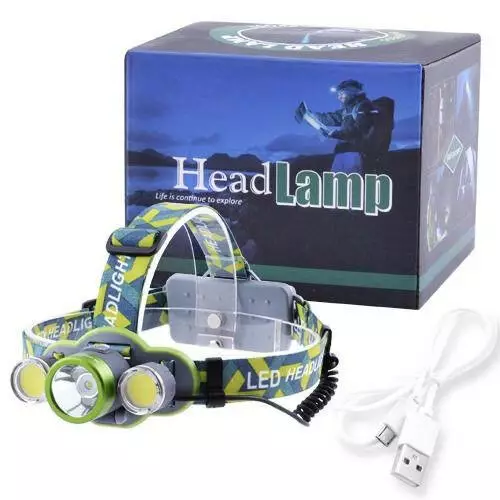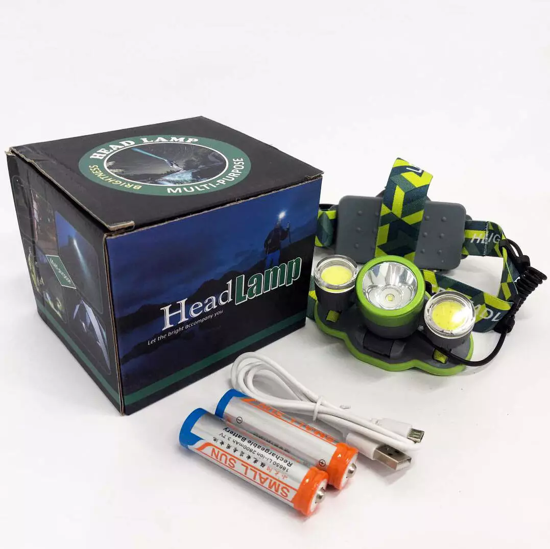 Фонарь налобный 2133-T6 + 2COB с индикацией заряда, светодиодный налобный фонарик, фонарь на лоб