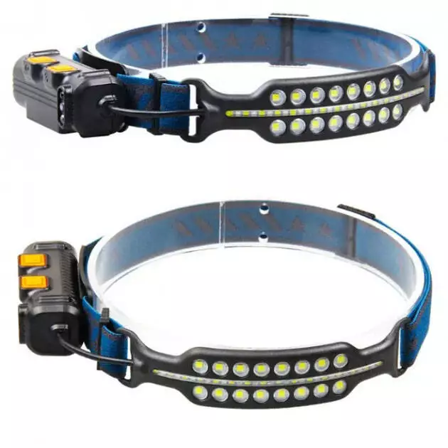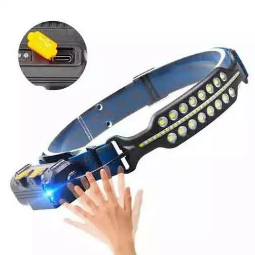 - Налобный аккумуляторный фонарик на двух видах светодиодов и Type-C зарядкой. Присутствует датчик движения для включения фонарика взмахом руки.
