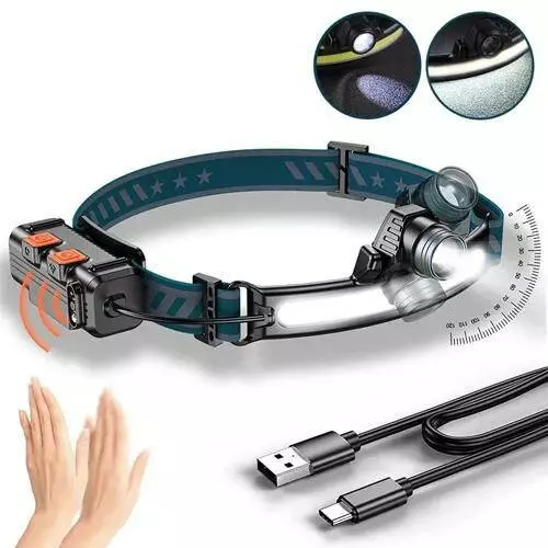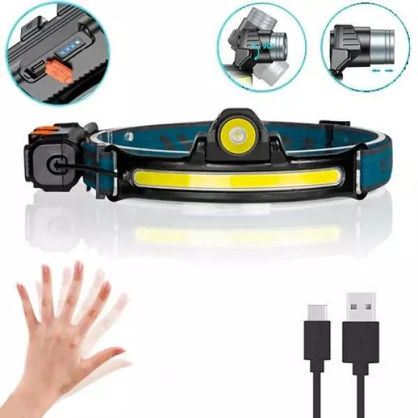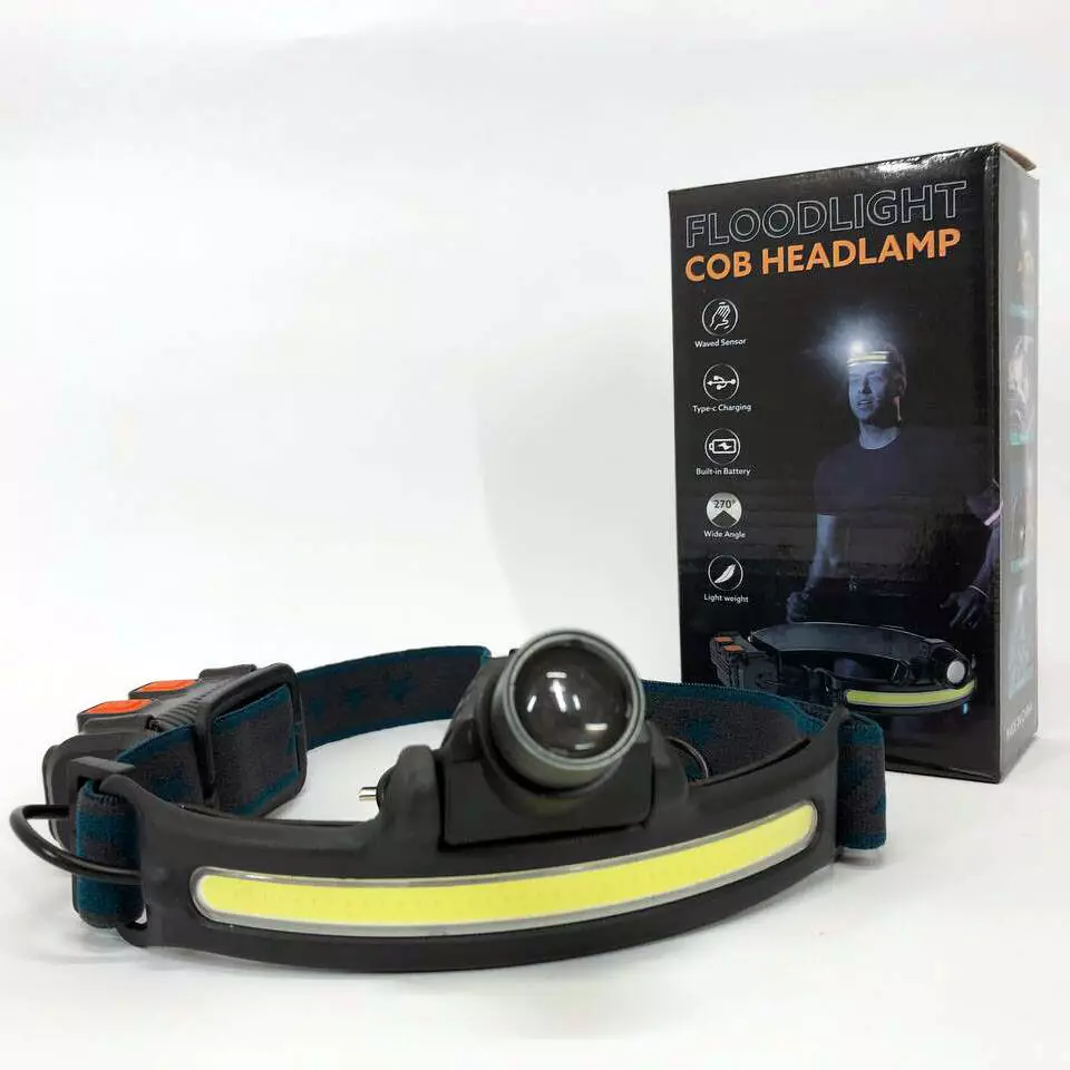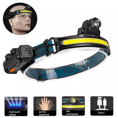 Фонарь налобный BL-W678-2-P50+COB Line со встроенным аккумом, датчик движения, зум, индикация заряда