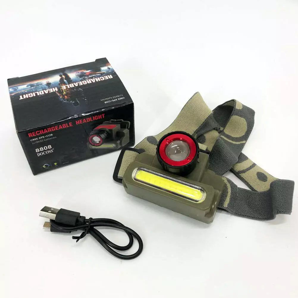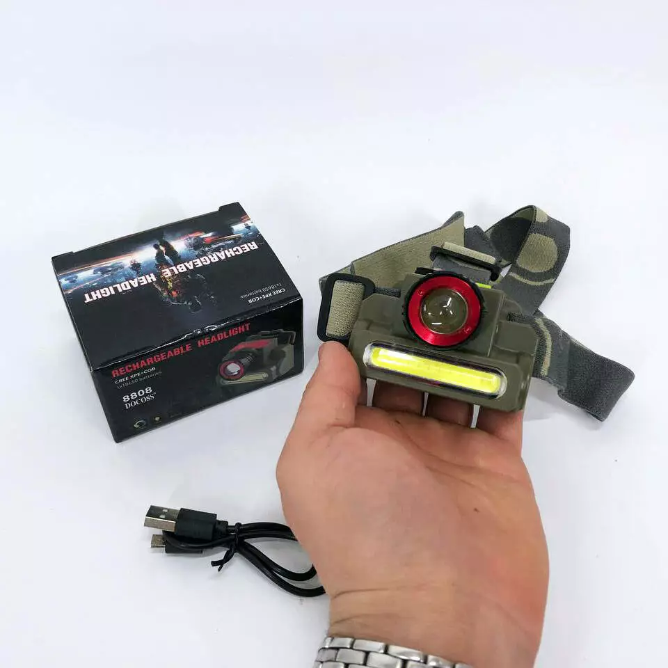 Фонарь налобный Police 8808/6908-XPE+COB, micro USB, встроенный аккумулятор, фонарик на голову с зарядкой