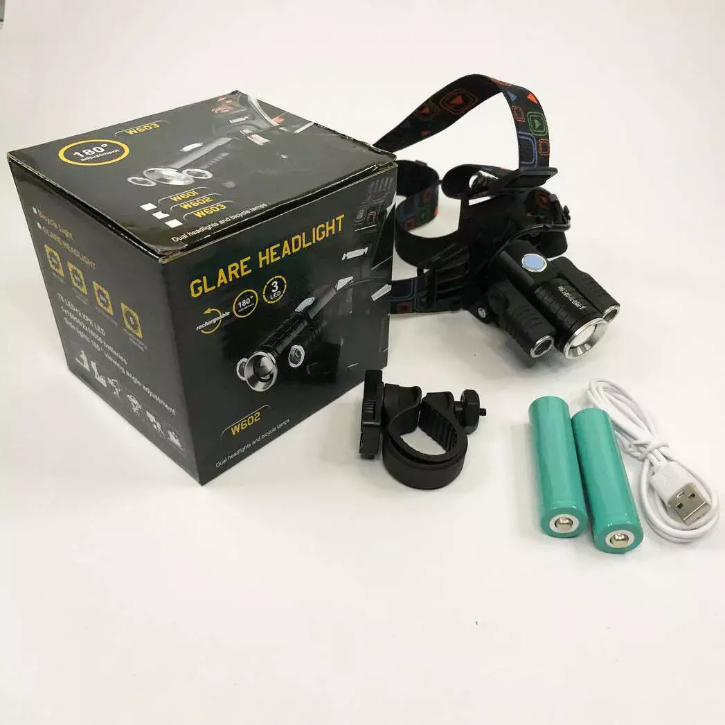 Фонарь налобный W602-T6-2XPE Bike с велокреплением 2x18650, светодиодный фонарь на лоб, сверхмощный
