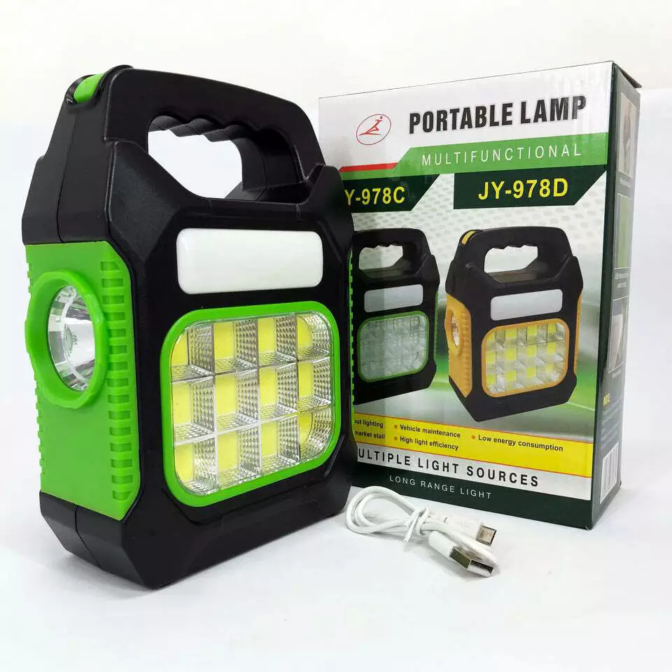 Фонарь переносной JY-978D-LED+12COB, power bank, фонарь светодиодный прожектор. Цвет: зеленый