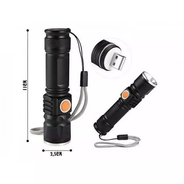 Zoom (масштабирование) от 1х до 4000х производится легким движением одной руки. Фокус луча сменяется выдвижением головной части фонаря. Фокусированная линза дает возможность изменять угол рассеяния света от широкого пятна к узконаправленному свету. Фонарь работает на мощном литий-ионном встроенном аккумуляторе. Зарядку аккумулятора можно использовать с помощью USB-адаптера.
