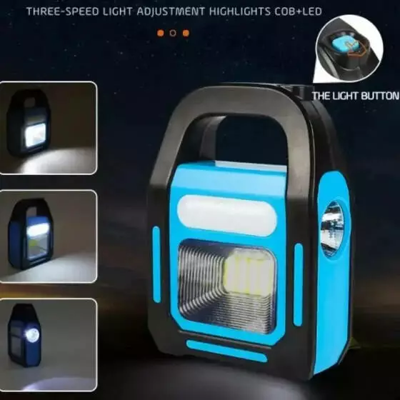 Фонарь светодиодный аккумуляторный на солнечной батарее HB-9707 B-2 ZB-40, переносной фонарь. Цвет: синий