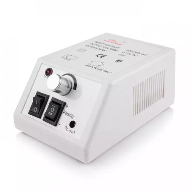 Максимальная скорость оборотов в минуту – 20000, регулируется круглой ручкой на передней панели. Рекомендуемая рабочая скорость 10-15 000 об/мин. Может работать в обычном и реверсном режимах. Для предотвращения перегрева предусмотрен предохранитель (встроенный).