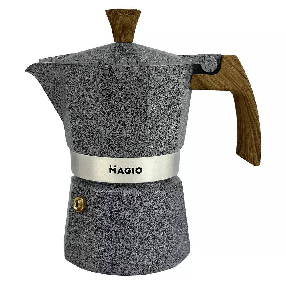 Классическая гейзерная кофеварка MG-1001 прекрасно подходит для приготовления традиционного эспрессо. Изготовлен из безопасного алюминия, который может вступать в контакт с пищевыми продуктами, ручка из термостойкого пластика. Подходит для использования на газовых, электрических плитах и костре.