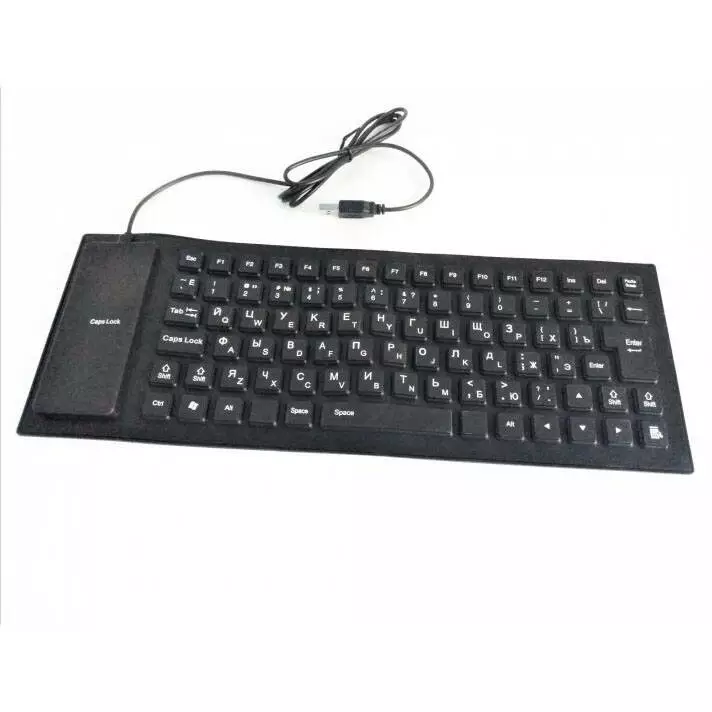 Эту уникальную клавиатуру действительно можно носить в кармане. И не потому что она очень маленькая. Просто ее можно складывать, сгибать, сворачивать, не боясь сломать. Также на нее можно пролить чай или кофе и с ней все будет в порядке. Гибкая силиконовая клавиатура Flexible Keyboard по удобству набора текста ничем не уступает своим обычным коллегам, печатать текст на ней очень комфортно. Так что теперь в любом месте вы сможете воспользоваться вашей собственной гибкой клавиатурой, удивляя друзей и коллег этим необычным девайсом. Клавиатурная матрица модуля изготовлена из силиконовой резины.