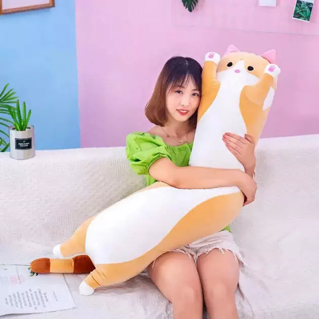 Гигантская мягкая плюшевая игрушка Длинный Кот Батон котейка-подушка 110 см. Цвет: коричневый