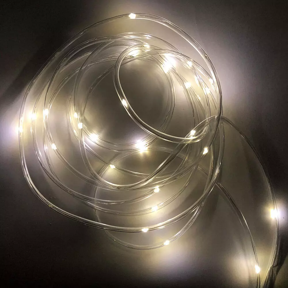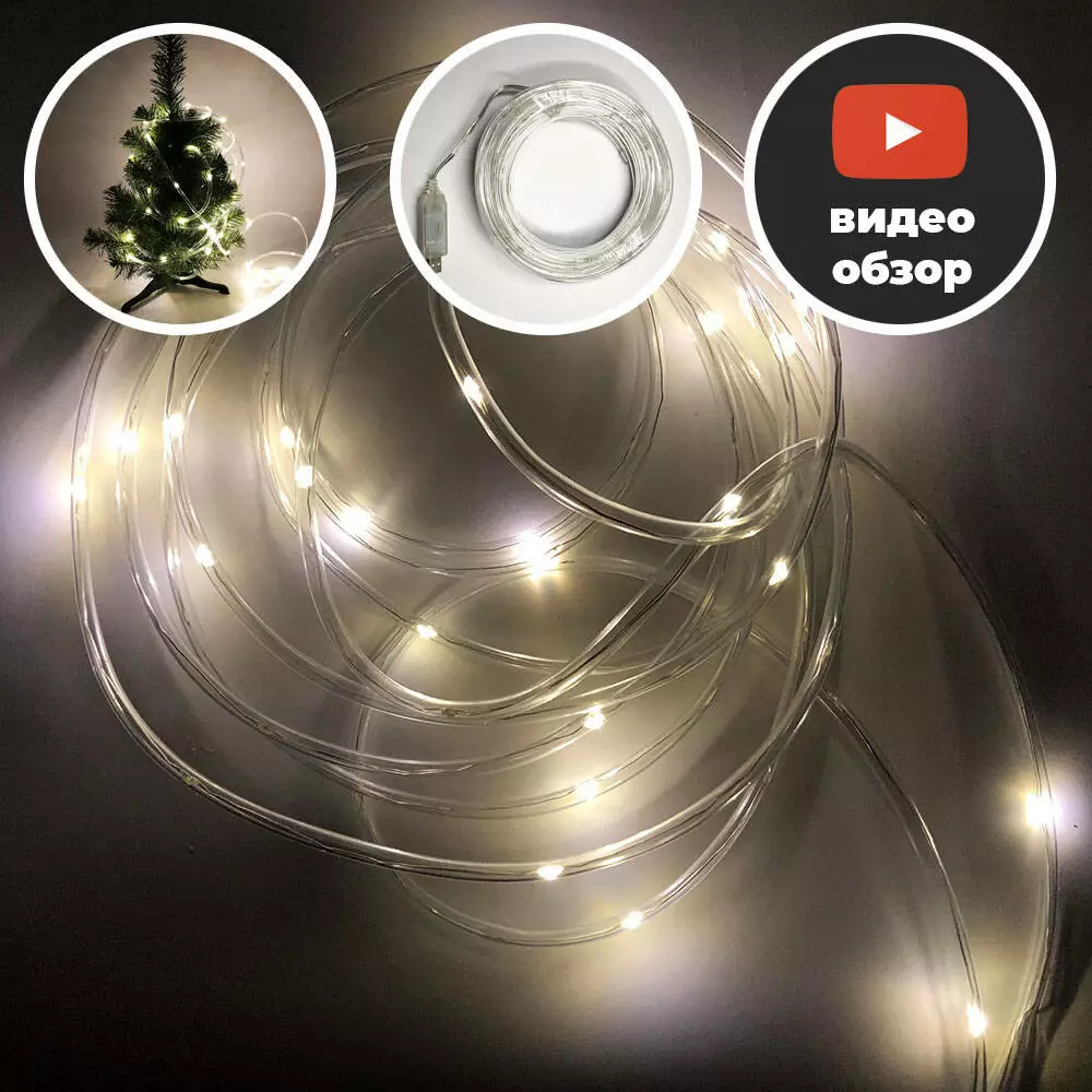 Гирлянда лента наружная (уличная, для улицы), светодиодная белая, диоды теплый белый, провод прозрачный, 10м. Питание от USB