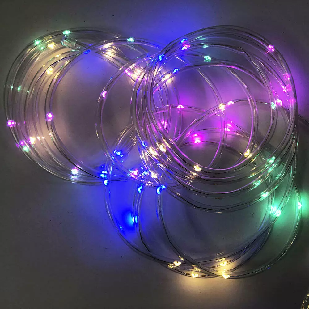 Гирлянда лента наружная (уличная, для улицы), светодиодная мультицвет, диоды разноцветные, провод прозрачный, 10м. Питание от USB