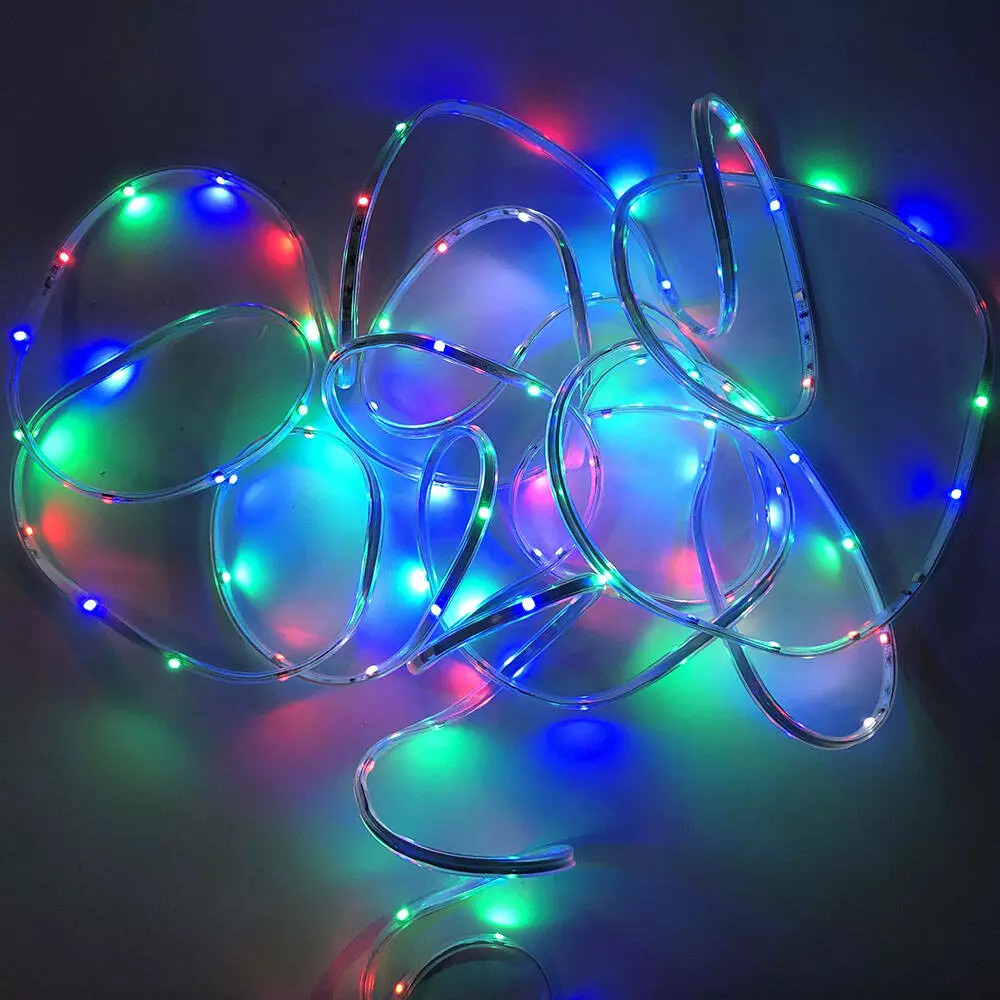 Гирлянда лента светодиодная наружная, диоды разноцветные, провод прозрачный, 5м