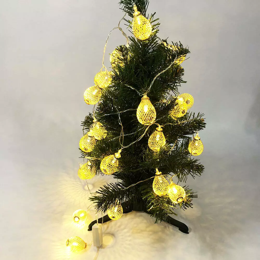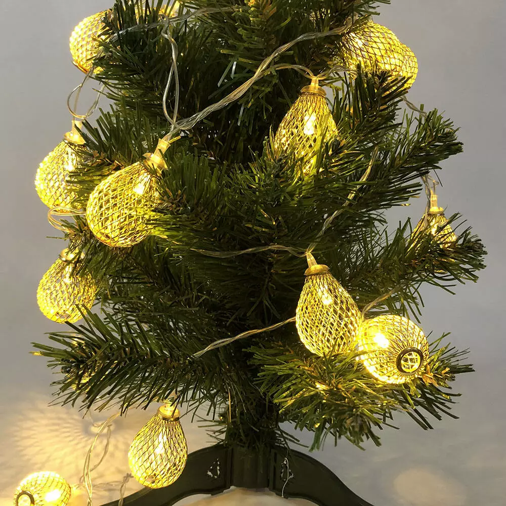 Гирлянда светодиодная белая, теплый белый в металлических шариках, провод прозрачный, 2м
