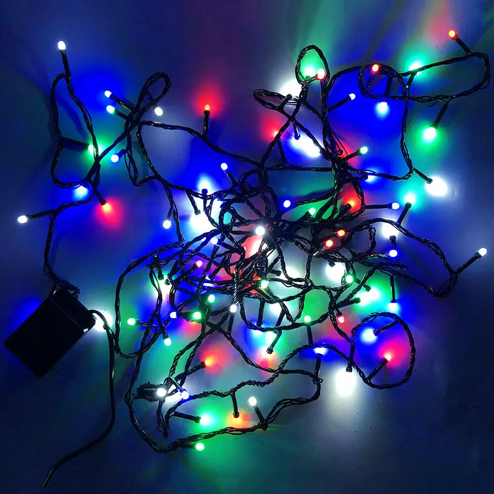 Гирлянда светодиодная диоды разноцветные, провод черный, 7м