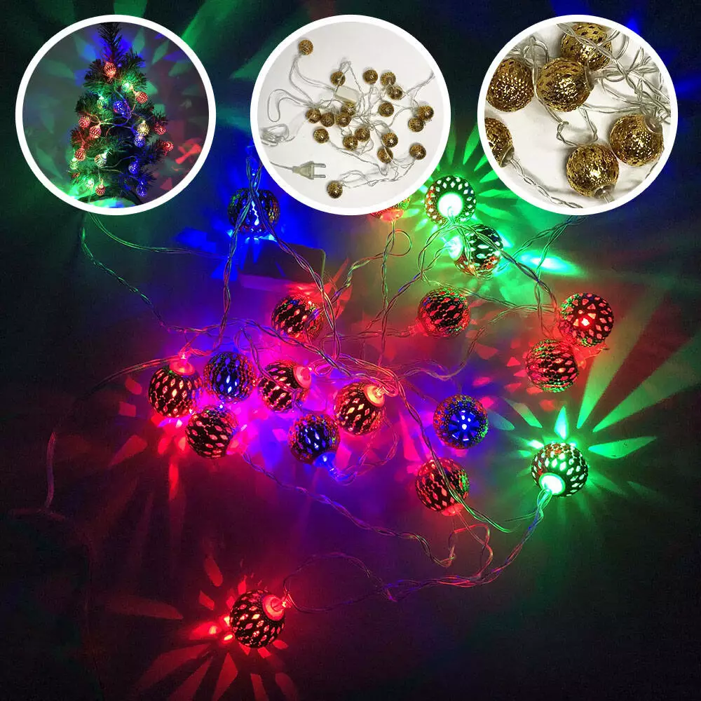 Гирлянда светодиодная металлические шарики, разноцветная, провод прозрачный, 3м