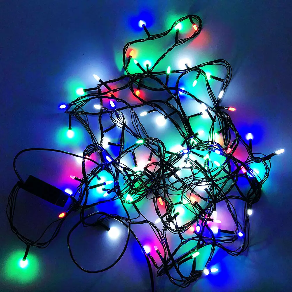 Гирлянда светодиодная на елку, гирлянда для дома, мультицвет. 5 режимов. Черный провод. 7м